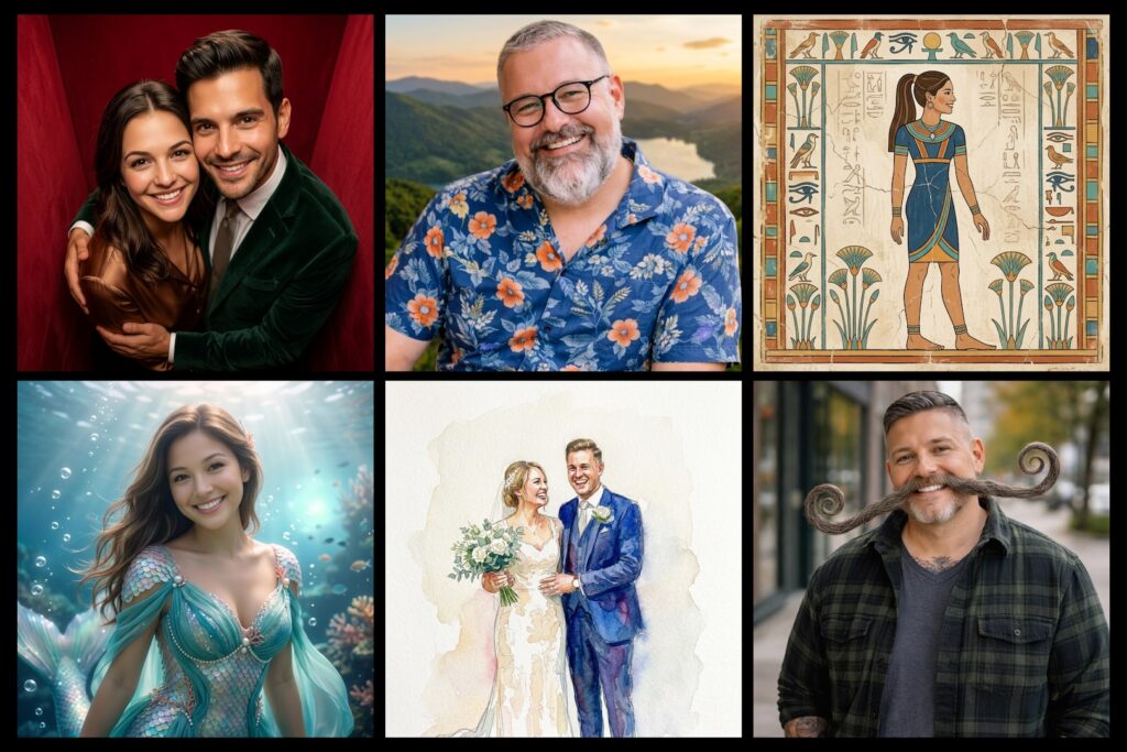 - AI-Powered Portrait Transformations: Using AI to turn guests into specific themes (e.g., retro 90s, superheroes, or elegant watercolor paintings).